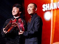 China's renowned director Zhang Yimou and Hong Kong action star Jackie Chan were each presented with an Outstanding Contribution Award at the opening ceremony of the eighth Shanghai International Film Festival (SIFF) on Saturday evening.