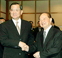 Wang Daohan, president of the mainland-based Association for Relations Across the Taiwan Straits (ARATS), met with visiting Kuomintang (KMT) Chairman Lien Chan and his delegation in Shanghai on Monday.