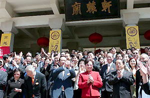 A middle-aged man shook hands with Soong and said, "Soong's homage-paying to Huangdi symbolizes psychological cohesion of the Chinese nation."