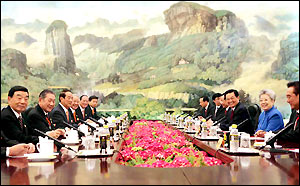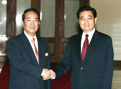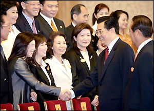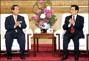 Hu Jintao, the general secretary of the Communist Party of China (CPC)'s Central Committee, met with Taiwan's visiting People First Party (PFP) Chairman James Soong on Thursday afternoon in the Great Hall of the People in Beijing.