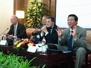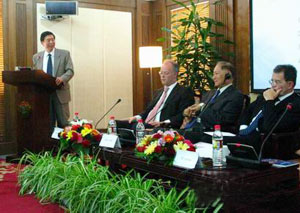 Former German Defense Minister Rudolf Scharping, Chairman of the China Reform Forum Zheng Bijian, and CFAU President Wu Jianmin also participated in the panel discussion.