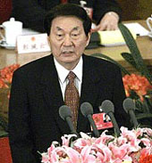 The Fourth Session of the Ninth National People's Congress (NPC), China's top law-making body, opened at the Great Hall of the People on March 5. At 9:00, Li Peng, executive chairman of the session and an executive member of the session presidium, announced the opening of the session, and invited Premier Zhu Rongji delivered a report of the draft outline of the country's 10th Five-Year Plan for economic and social development.