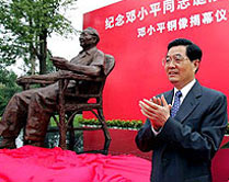 Two of China's great statesmen met this morning, when President Hu Jintao unveiled a statue of the late Chinese leader Deng Xiaoping on the eve of the 100th anniversary of Deng's birth. Hu said the great contributions Deng made to China's revolution, development and reform will be remembered in history books.