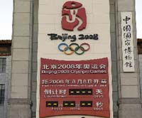 At the same time, a countdown clock for the Beijing Games was also placed in Qingdao, a coastal city in east China's Shandong Province, the host city for the sailing events of the 2008 Games.