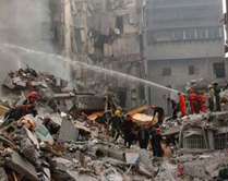 The fire was extinguished and the search for the trapped fire fighters in continuing.