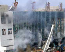 Preliminary investigation indicated the fire started from a temporary storehouse at the building's rear that nears a boiler room, and local police had summoned 36 people, including the center's security officers and the worker in the boiler room for questioning.