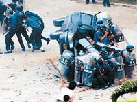 An official was held hostage and three vehicles were damaged, the Shenzhen Special Zone Daily reported Thursday.