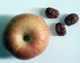 Prepare one apple, 50 grams of Chinese dates and 150 grams of pig's liver. Cut the apple into cubes and the liver into slices.