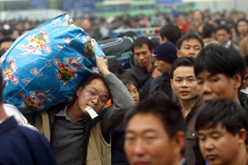 In the capital, over 260,000 people - mainly migrant workers - left Beijing by rail on the first of four days during which the nation's transport network will be at full stretch.