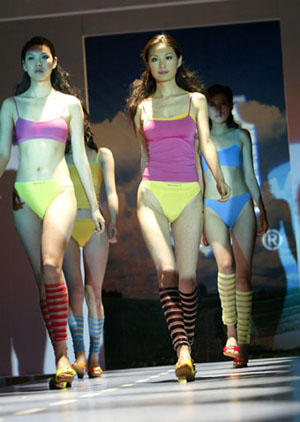 A Shanghai-based brand name underwear maker launches its new line of creation in a underclothes fashion show in Shanghai, May 18, 2005.