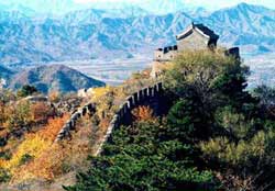 Setting out from Beijing, the most popular destination for visiting the Great Wall is Badaling. Both trains and buses go to the northwest of the city proper in a deep mountain-flanked gully 15 kilometers long. In summer, the peaks here are covered with brilliant stretches of leaves and luxuriant flowers. As early as the 13th century, the area was known for its beauty, and was listed as one of the"Eight Great Sights of Yanjing." The name "Juyong" first appeared in the huainanzi, a philosophical work from the second century BC, in the following annotation: "The Juyong Pass is one of the nine great passes in the country."