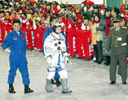 Yang Liwei: I got the news that I was selected the first spaceman at the night of Oct 14 (the eve before the launch day). Actually, we three had all well prepared for the first manned space flight. I thought I was so lucky and, besides, I promised myself to make every effort to complete the task. I was calm then and had no distracting thoughts. I fell asleep at 8 pm and was woken up by the doctor at 2 am next morning. Later on, I ate some noodles and dumplings and read the working procedure again. I set out at 5:20 in the morning.