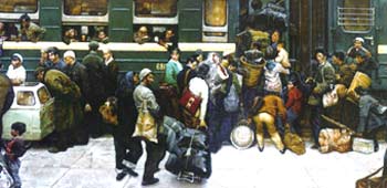 A part of "Rush to the Train," an oil canvas by Gao Xiaohua [China Daily]