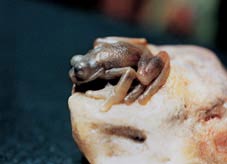 Wang's qiaose (pretty color) works have won people's admiration. Wang designs his work according to the color and vein of stone materials he has selected. He ingeniously exploits the characteristics of the selected stone and sculpts with great care and consummate skill. His works of small animals, including frog, turtle, snake, and scorpion, in natural colors and various postures, look lifelike, which is inconceivable to many people. The colorful stones Wang has used include balin from the Inner Mongolian Autonomous Region, jixue from Zhejiang Province, lingbi from Anhui Province, and caitao from the Guangxi Zhuang Autonomous Region.