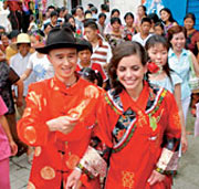 Following that, the couple made ceremonial obeisance: first they bowed to the groom's parents, then to each other. After that, they drank from the nuptial cup, an indispensable part of an old-fashioned marriage ceremony. Not familiar with the procedure, the foreign bride was a little bit awkward and made small mistakes from time to time. Every time this occurred, though, the considerate groom would lean closer to her, whispering something in English to put her at ease. Parents-in-law, relatives and friends all wore smiles, and showed consideration and tolerance.
