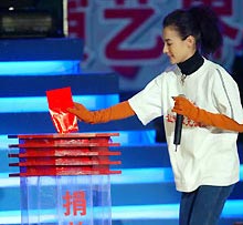 Both celebrities and the audience dropped money into donation boxes on the stage and around the stadium.