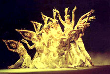 Guided by the hand language, the dancers elegantly depict the bodhisattva with a thousand hands and a thousand eyes, as he has been seen by many people in the Mogao frescoes in Dunhuang, in Northwest China's Gansu Province.