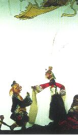 Shadow play is a kind of drama in which silhouettes made of hard paper and hide are projected onto a white screen. The performer manipulates the characters behind the screen while singing the libretto to tell the story. The story-telling is accompanied by music.