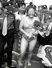 Yin, 1.62 meters tall and weighing 80 kilograms, works with the Dali Cigarette Factory in Yunnan. She began to practice swimming at the age of 28. On July 29, 2001, she swam 38 kilometers against the current across Er Hai, also a highland lake in Kunming, without professional guidance and specialized protection.
