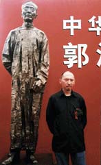 Guo from Guo's daughter. As the sculpture was about to be put in the grand China Century Monument Hall as one of the forty Culture Celebrities of China, Li made up his mind to recall Guo's image in 1940s – an old-styled gown with streamline-shape, on which Li intentionally molds the lines of Guo's clothes abstractively so as to make the figure looks tall and big, while Guo's bony left hand naturally falls on his body on which Guo holds a book authentically reveals Guo's thinness. Besides, Li also boldly molds Guo's glasses without a frame. Looking at the sculpture, viewers can sense the lofty and unyielding character of Guo's personality. When asked his feelings about the work, Li says, "Before starting, I read many of Mr. Guo's works to help better understand him, to feel his happiness and sorrow so as to enliven my work. An outstanding statue should reflect the spirit of the antitype."