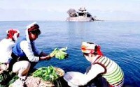 Three Ethnic Bai women wash vegetables in the Erhai Lake, which located on the Yunnan-Guizhou Plateau, southwest China. The once polluted lake by blue green algae regained purity after effective controls to curb the pollution since 1997.