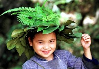 In the photo, a Bouyei girl dons a hat she made from tropical leaves. People make about 50yuan (US$6) a day by selling such hats to tourists in Guizhou Province.