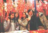 Beijing citizens tolled the Yongle Bell in the Big Bell Temple 108 times at the turn of the new year, hoping to get rid of all the annoyances and troubles which afflicted them last year and have more luck in 2002.