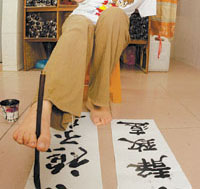 Since then, He Xuemei devoted most of her time to practicing calligraphy, trying to write it with her mouth, toes or even the left part of her right arm.