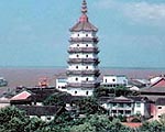 If you take a ship to the city, which is situated on the Yangtze River, you can see from far away the lofty tower and the temple architecture.