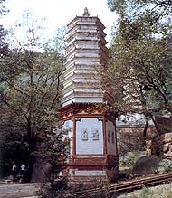 About two hundred meters west from Bishuilong Lake and passing through an arched gateway on the north side of the road stands the tomb pagoda of Master Monk Wuche.