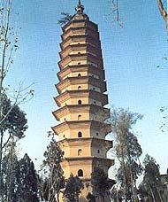 This pagoda, located on a slope of Zhongtiao Mountains some ten kilometers southwest of the county town of Yongii, is said to have been construct- ed in 1586 during the reign of Emperor Wanli of the Ming Dynasty.