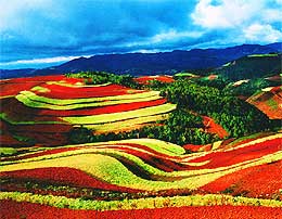 In China today, 130.04 million ha of land are cultivated, mainly on the Northeast Plain, the North China Plain, the Middle-Lower Yangtze Plain, the Pearl River Delta and the Sichuan Basin. The fertile black soil of the Northeast Plain, the largest plain in China with an area of more than 350,000 sq km, abounds in wheat, corn, sorghum, soybeans, flax and sugar beet. The deep, brown topsoil of the North China Plain is planted with wheat, corn, millet and cotton. The Middle-Lower Yangtze Plain’s flat terrain and many lakes and rivers make it particularly suitable for paddy rice and freshwater fish, hence its designation of “l(fā)and of fish and rice.” This area also produces large quantities of tea and silkworms. The purplish soil of the warm and humid Sichuan Basin is green with crops in all four seasons, including paddy rice, rapeseed and sugarcane, making it known as the “l(fā)and of plenty.” The Pearl River Delta abounds with paddy rice, gathered 2-3 times every year.