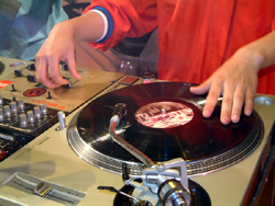 Shorty S has been plying his craft for four years. He was a skateboarding fan and occasionally listened to hip-hop. Then one day he went to a DJ party -- and was hooked. He fell in with another DJ to buy some equipment. Eventually he bought his own turntable and some vinyl records and his scratching career was launched.