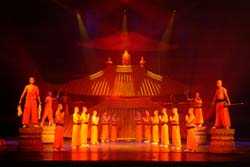 Cut to the present day, the tale is told in the Red Theatre in the Chongwen District of China's capital Beijing amid a colorful musical extravaganza of lights, dance and amazing fight scenes.