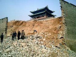 "The section of ancient wall looks fine on the outside but the tamped earth inside the layer of bricks had slackened," Gao told China Daily via a telephone interview. "A gust of wind can blow out dry earth from the bricks."