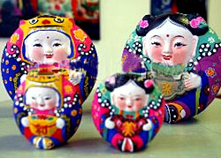 Her eyes glittering with excitement, the 64-year-old held the two lovely, plump figurines -- a boy and a girl -- in her arms as if holding her own children. The handmade figurines are considered symbols of happiness and auspiciousness.