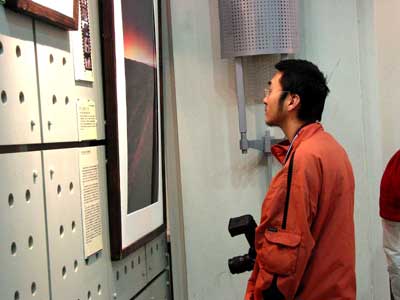 Hundreds of people visited the exhibition in opening day. Zhou's photographs line the walls of the exhibition hall, while the DV images and interview segments appear on two video monitors in the center of the room.