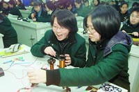 A grade-two student Fan Hong said: "In an all-girl school, we are more willing to express ourselves and be independent because we needn't care about boy classmates' comments." Without any boys around to help, Fan and her classmates were carrying out a chemical experiment, dissecting a grasshopper, cleaning the classroom and playing basketball all by themselves.