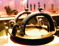 The most amazing exhibits on show are the women's accessories. The rings, earrings, necklaces and perfume bottles, in the shape of animals, nudes, fish, grapes, warriors and other designs, are delicately embedded with tiny drops of gold.