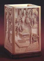 The Guangzhou-style ivory carving is most famous for its unique hollowed-out ivory ball -- a ball-shaped ivory piece being carved into as many as 45 layers, each beautifully-patterned layer able to rotate.
