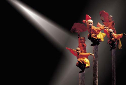 The boys dance on staves as naughty monkeys, and both boys and staves are in the air for what seems an impossible length of time.