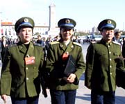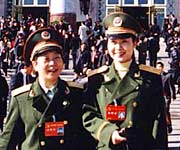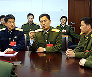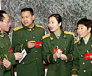 Delegates from the Army discussing Jiang's report to CPC 16th Congress.