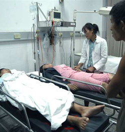 A farmer was killed by lightning when he was working in the field as the torrential rain swept the city at 6:00 PM in Shantou, south China's Guangdong Province August 4, 2004. A shabby house collapsed in the rain and left 5 injured, among them two were in critical conditions. Local weather bureau said the lightning have killed two and caused economic damages worth 400,000 yuan (US$48,000) since summer came.