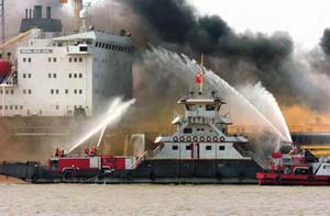 A search and rescue drill was held at the mouth of the Yangtze River Oct. 20 to deal with marine and inland waterway disasters.