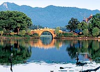 The West Lake, covering 6.5 square kilometers, is the most important scenic spot in Hangzhou. It has been famous for thousands of years for its intoxicating beauty. It was originally a shallow sea inlet before it became a lake due to the laying down of silt.