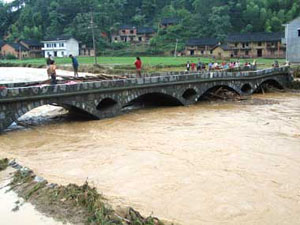 "Torrents of water rushed down the mountain in the small hours of the morning, flooding houses in 10 villages dotted across three townships in Xinshao County, with more than 30 houses collapsing on farmers who were fast asleep," local sources said.