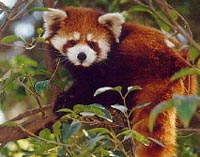 The red panda, reddish brown in color, grows to about two feet and weighs 6-12 pounds. It lives in south China's Yunnan, Sichuan and Tibet.