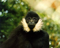 White-cheeked gibbons, native to Hainan, live in tropical virgin forest. The 23 gibbons are found in the tropical forest in the Bawangling Nature Reserve in the western part of Hainan.
