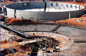 Workers build a huge sewage treatment plant in Wuhan City, Hubei Province. The project, which costs 150 million yuan (US$18 million), can treat 100,000 tons of sewage a day.