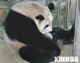 This file photo dated December 26, 2001 shows the "son" Xiongbang in Japan. The photo was taken only a few days after Xiongbang was born.